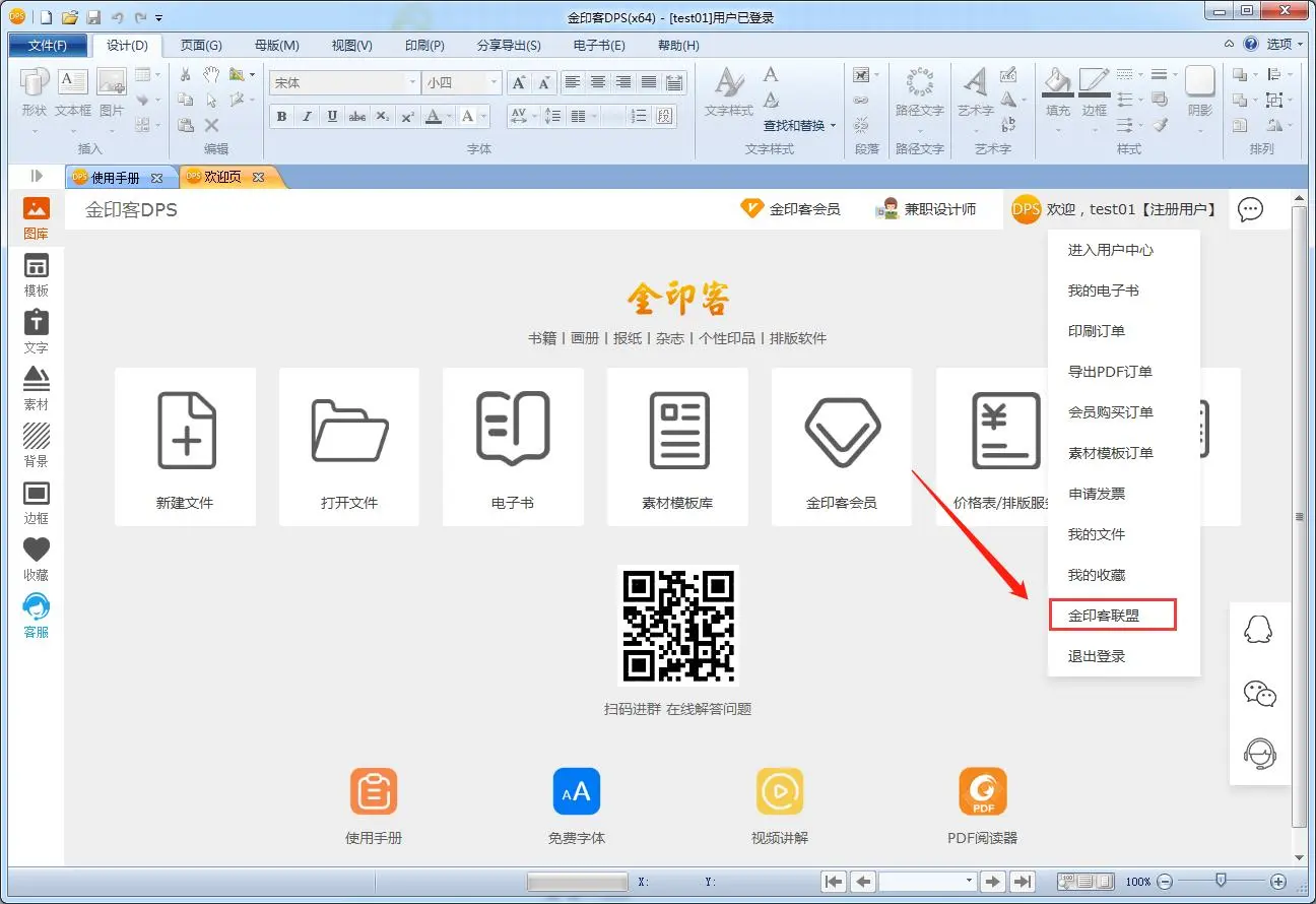 打开金印客软件,在软件欢迎页右上角,点击金印客联盟进入