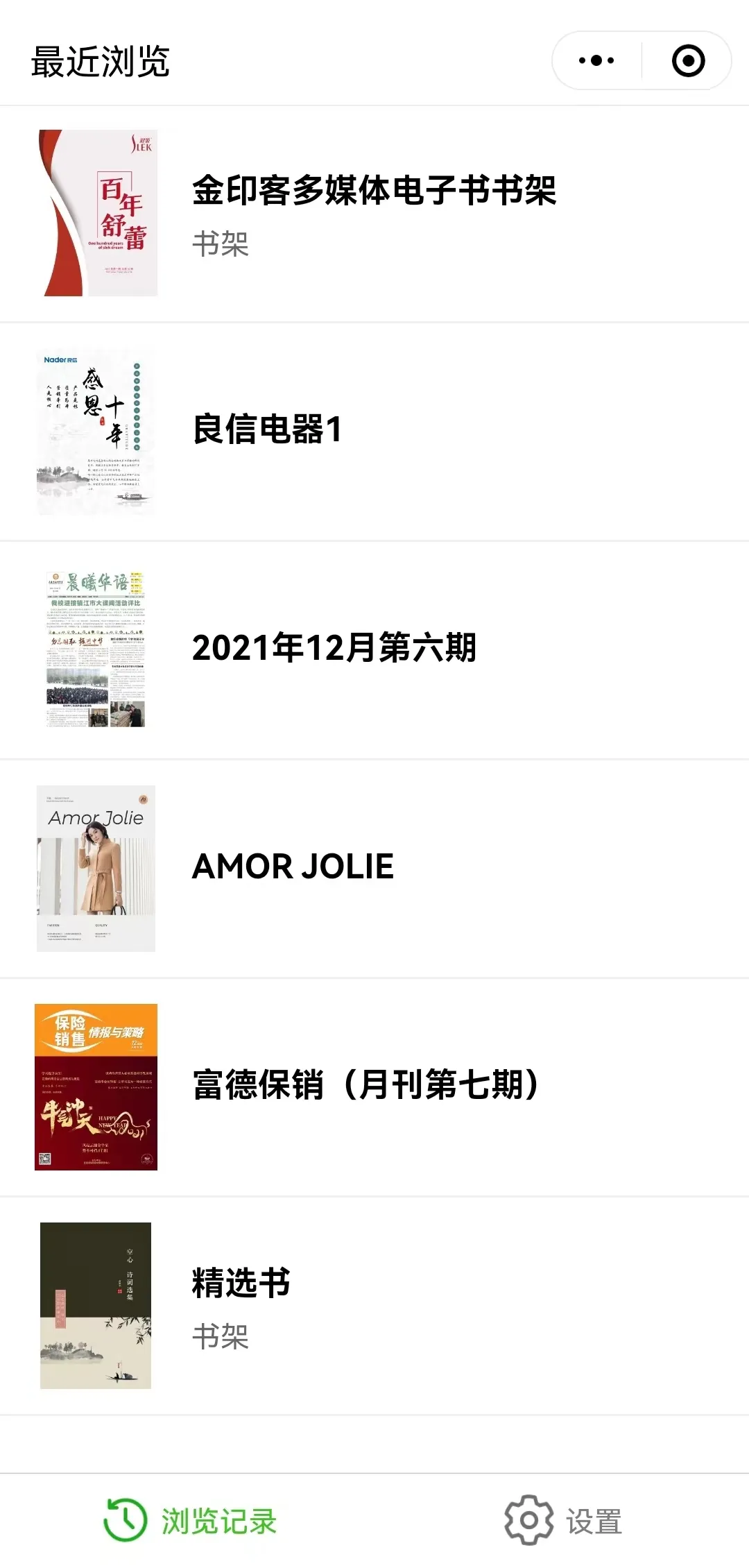 金印客多媒体电子书的浏览记录可以记录用户最近浏览过的电子书,下次打开小程序可继续浏览,减少搜索的时间