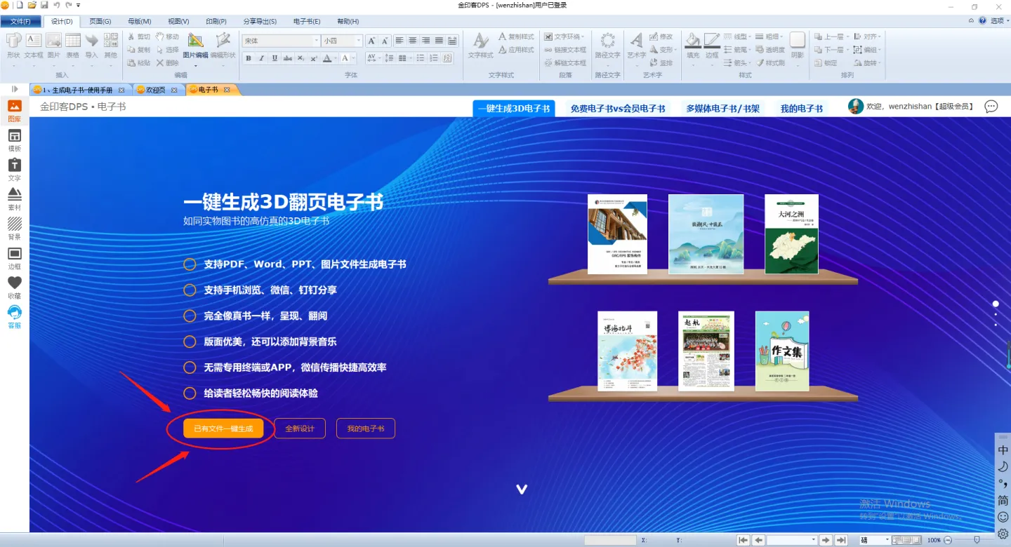 并且金印客支持PDF、Word、PPT、图片文件生成电子书,只需要将文件导入软件就可以免费生成电子书。如果您手头上宣传册的文档,直接导入金印客,就可以直接快速生成电子书
