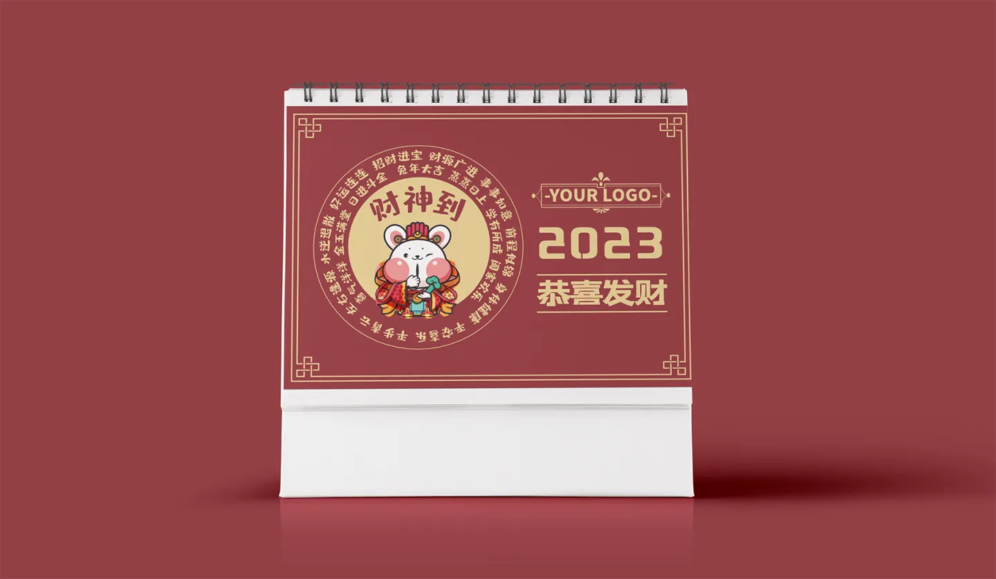 这一款红色喜庆,配图可以换成与公司相关的图片,再添上公司的logo,这样这本台历就不仅仅是一本台历了,也是展示企业文化的一部分了。年底时可以将台历送给老客户,既可以维护老客户,又可以在未来一年里,向客户宣传公司,展示公司的品牌文化。