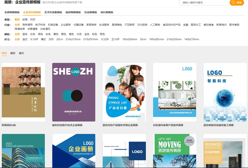 2)为什么能够自己排?因为有大量的单位、公司、企业宣传画册模板。