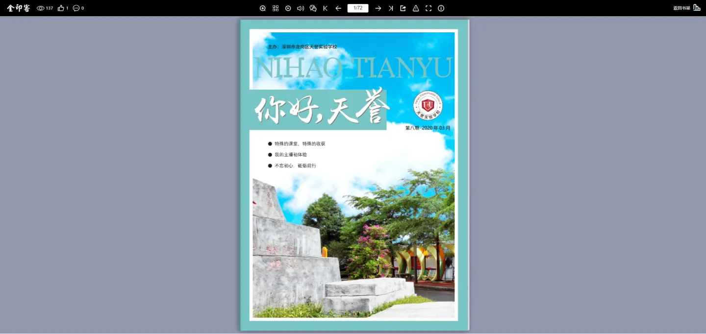 用金印客软件排出来的学校内刊期刊杂志,可以直接生成3D翻页模式的多媒体电子画册。