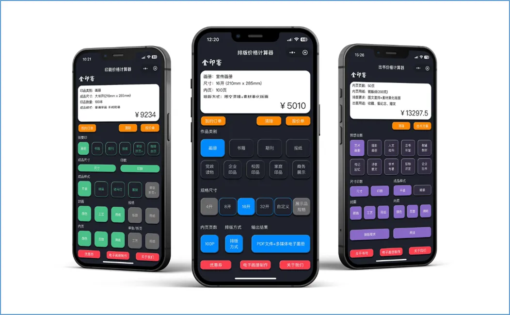 相继推出了“设计排版价格计算器”、“出书价格计算器”等小程序,异曲同工。