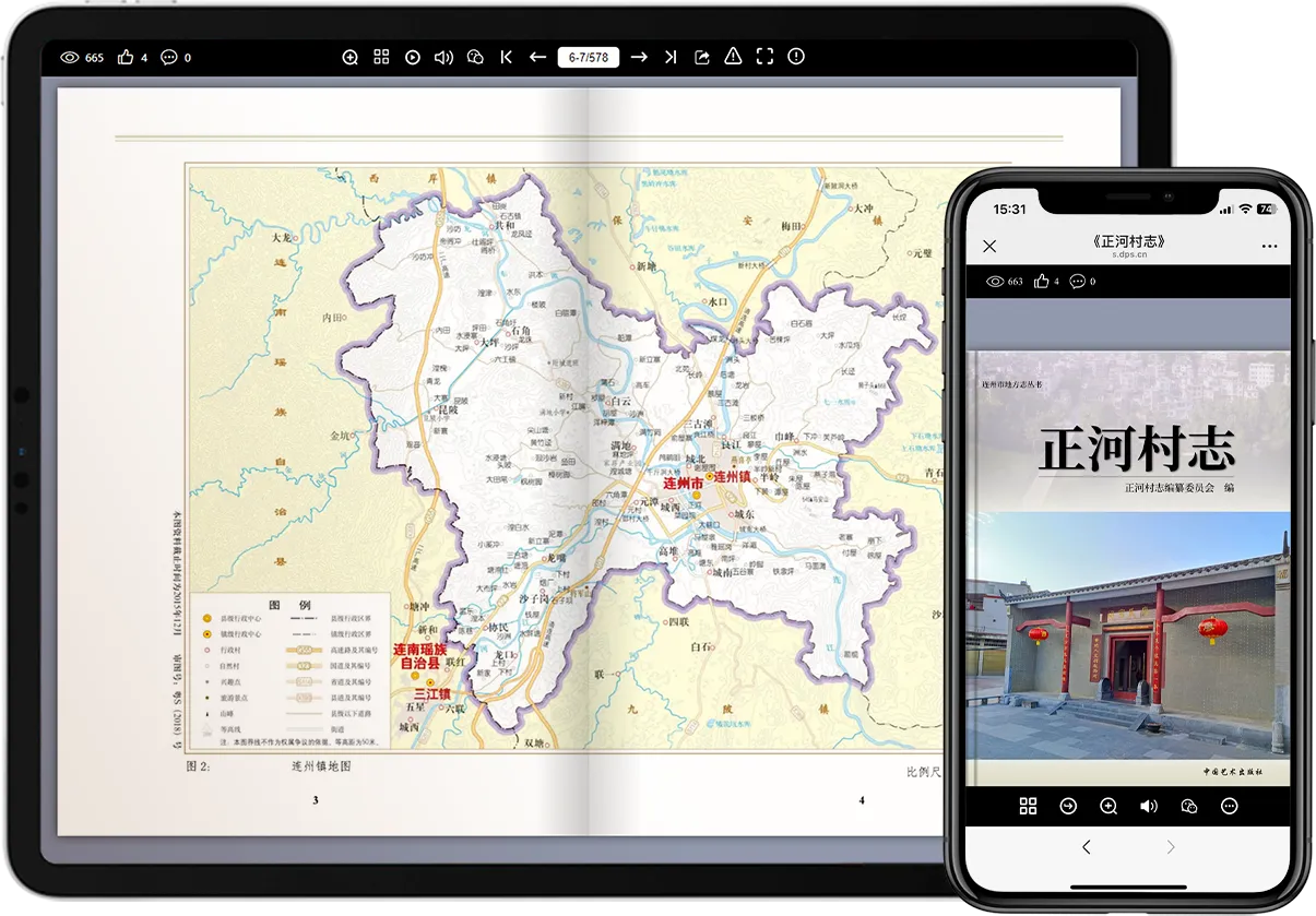 金印客排版软件,可以将排好版村志,直接生成3D翻页电子书,传播方便快捷,突破了实物印刷品数量的限制,弥补了不足。