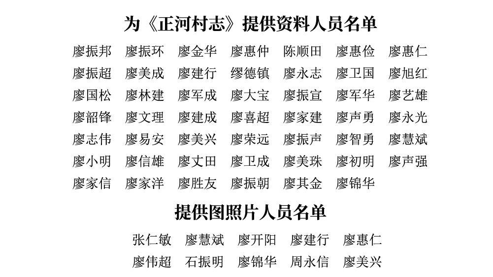 廖氏族人有修谱修志的传统,最早《廖氏谱系》,修于1192年,本次《正河村志》历时三年,五易其稿,终于2024年6月出版成功。