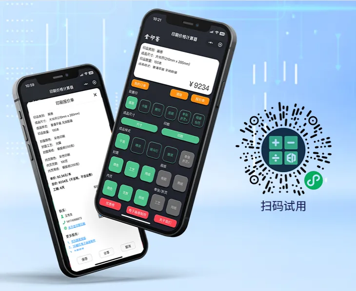 如果想印刷书刊画册,在微信里搜“印刷价格计算器”。