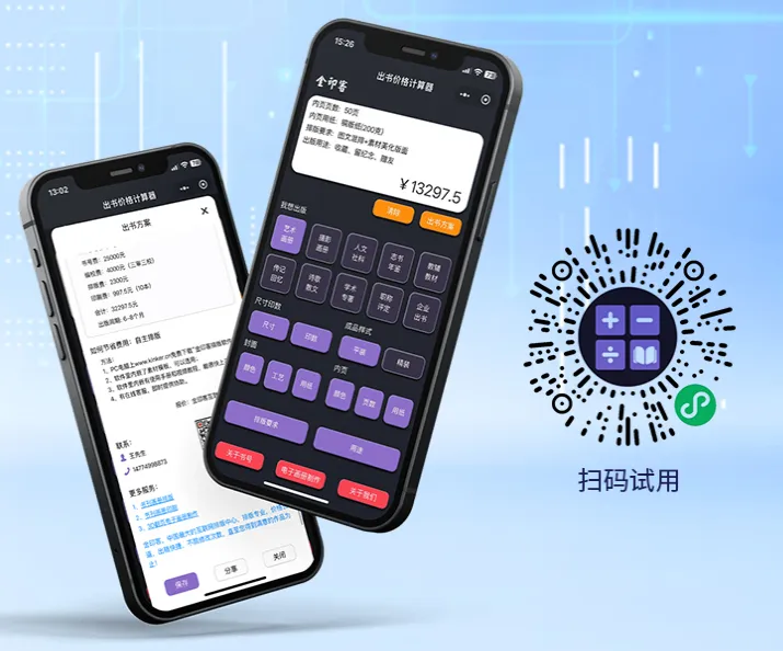 把书籍画排版设计、印刷、及出书报价软件,做成计算器的形式,你自己也能算