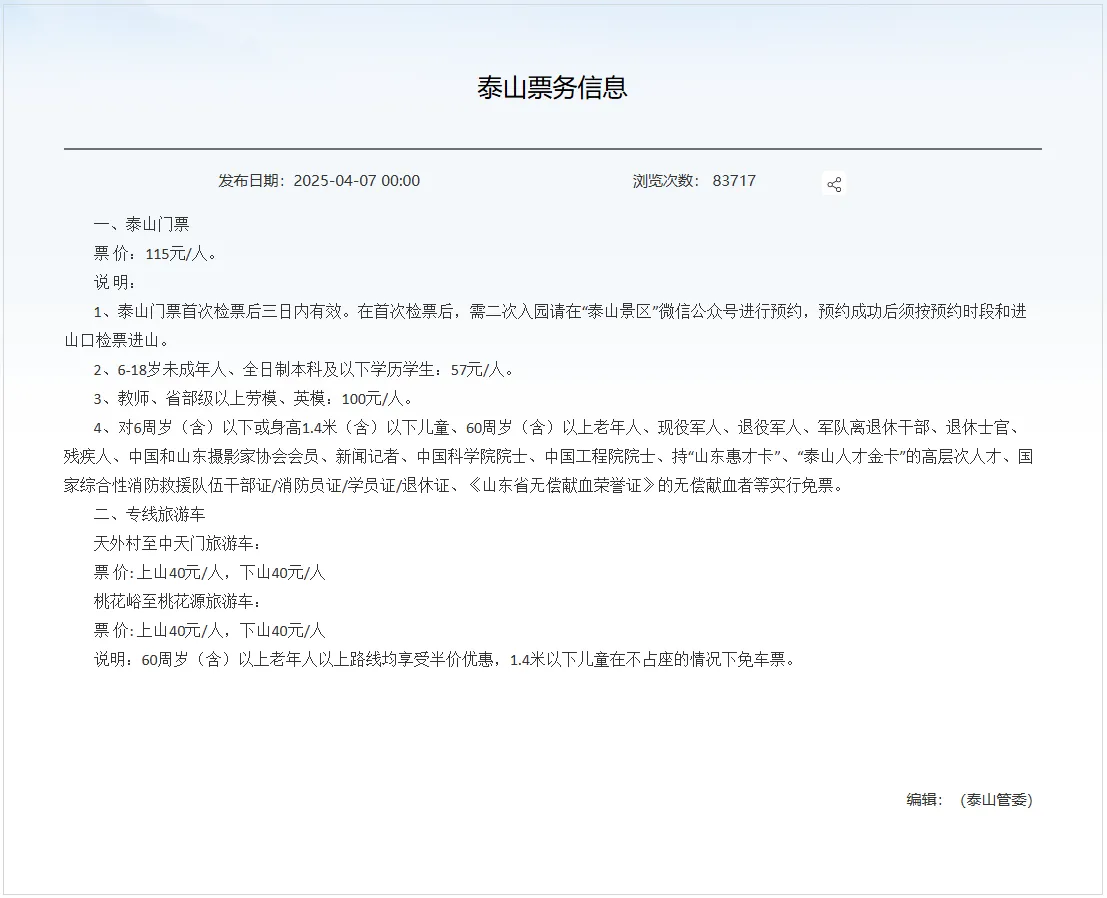 还是总结一下登泰山门票与交通的开销吧。