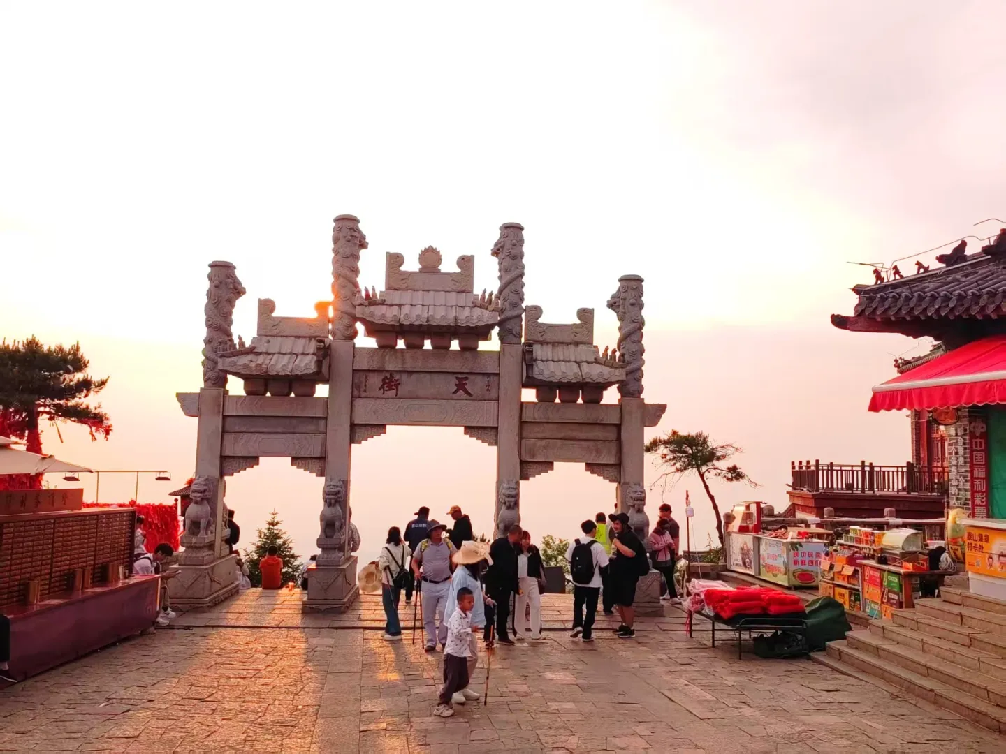 29日下午上泰山,逛夕阳下繁华的天街,驻足“五岳独尊”处,登玉皇顶,远眺汶河、黄河,看夕阳西下。