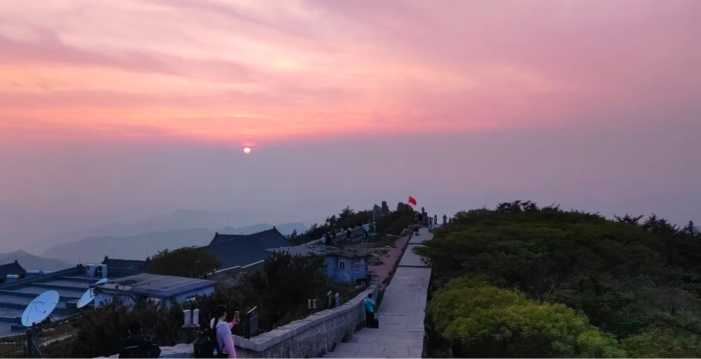 30日清晨,沿北路经“北天门”,登上尧观顶,当一轮红日在天边黛色的晨雾中冉冉升起时,原来还在静静等待的人们,顿时欢腾起来,有的欢呼,有的高歌,在幽幽的山谷中久久回荡。