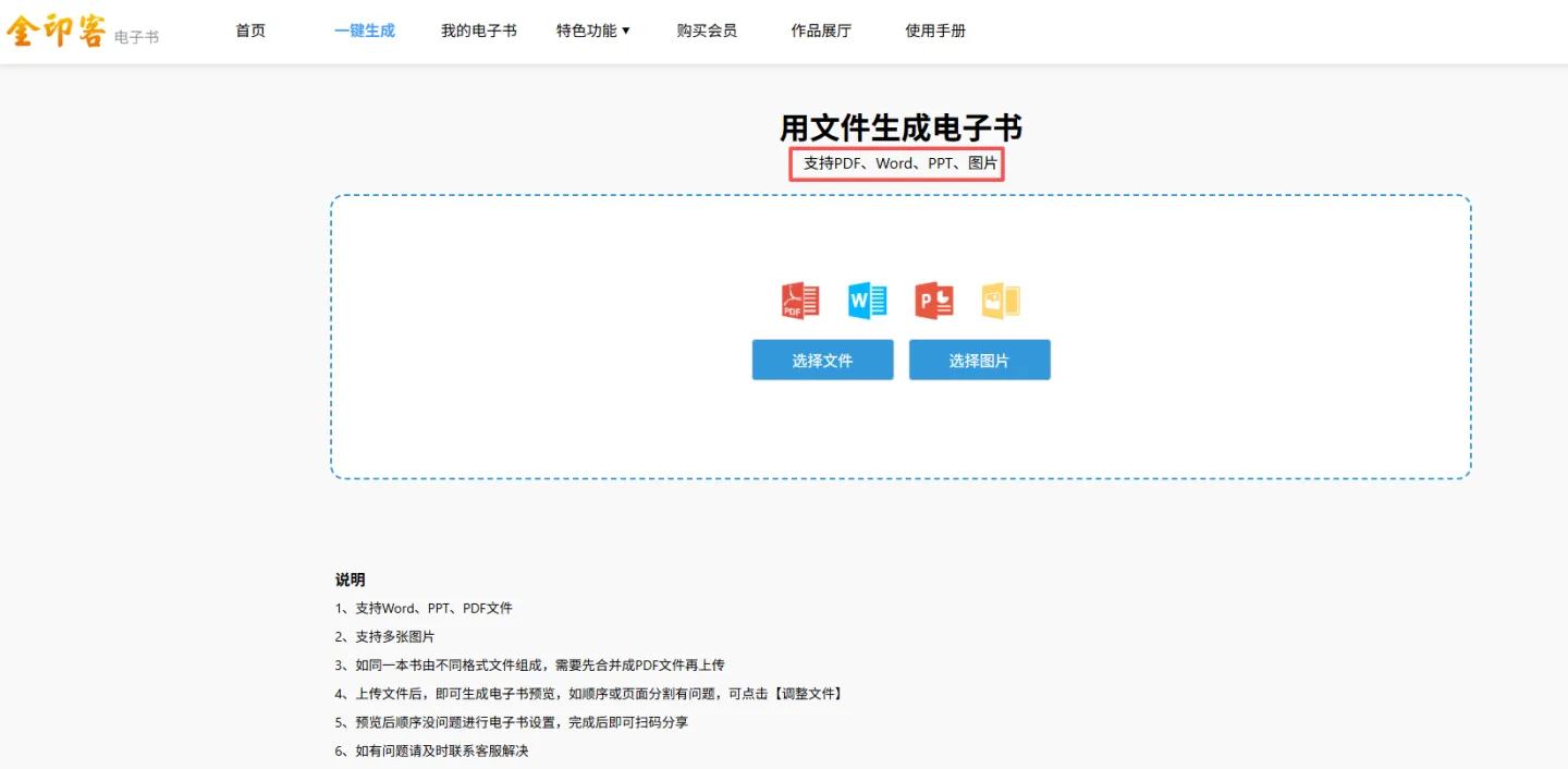 在金印客官网上,直接上传PDF、WORD、PPT、JPG等文件制作。