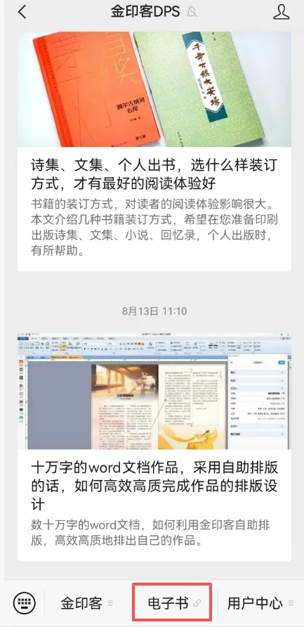 利用微信公众号“金印客DPS”, 直接上传PDF、WORD、PPT、JPG等文件制作。