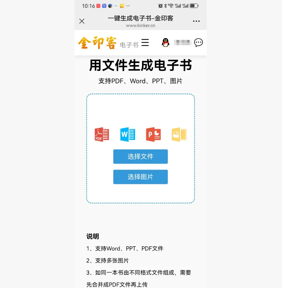 3、即可在手机端上传PDF、WORD、PPT、JPG等格式文件制作3D翻页电子书了