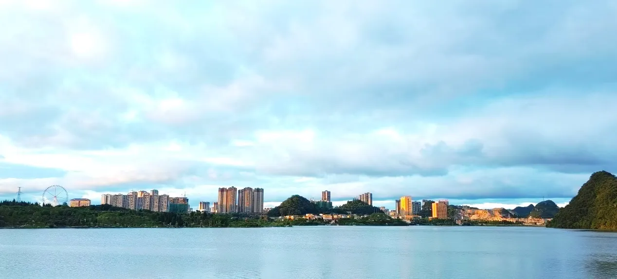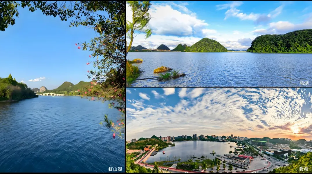 杨湖、娄湖、红山湖,像三块碧玉,静谧而精致,镶嵌在安顺繁华闹市,闹中有静,相得益彰。