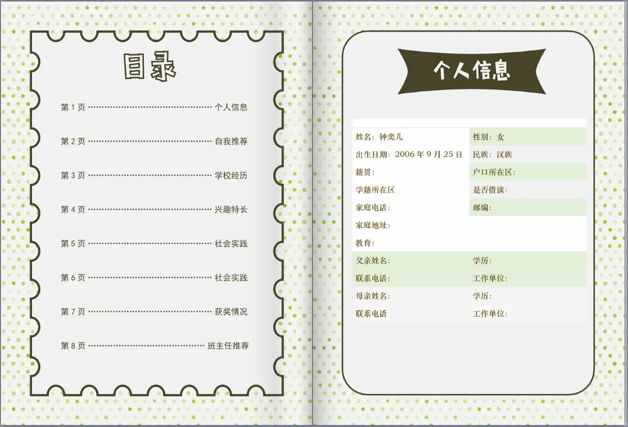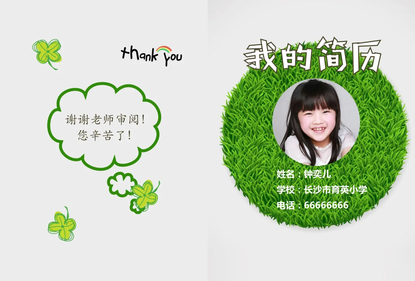 为马上要毕业班的钟奕儿做了一份简历