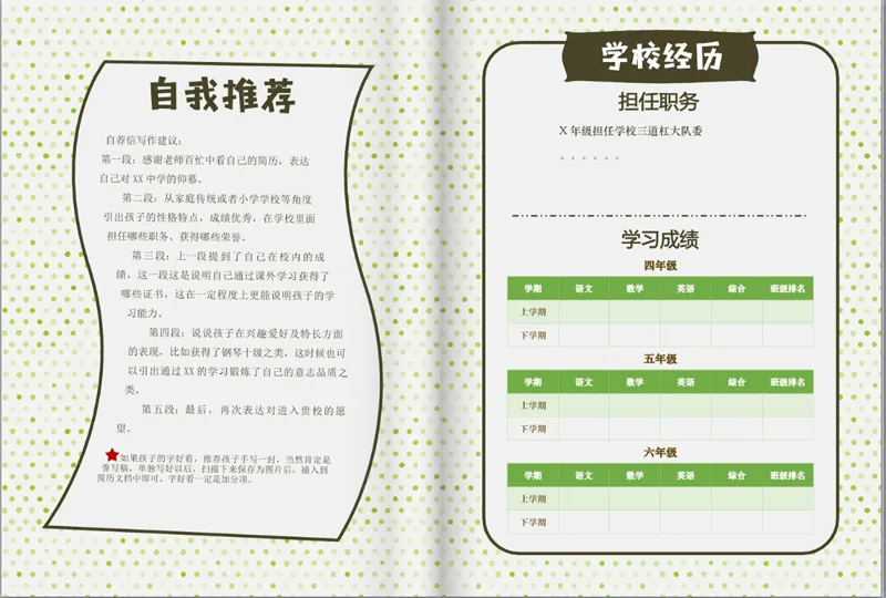 小升初简历主要内容应包含以下部分: