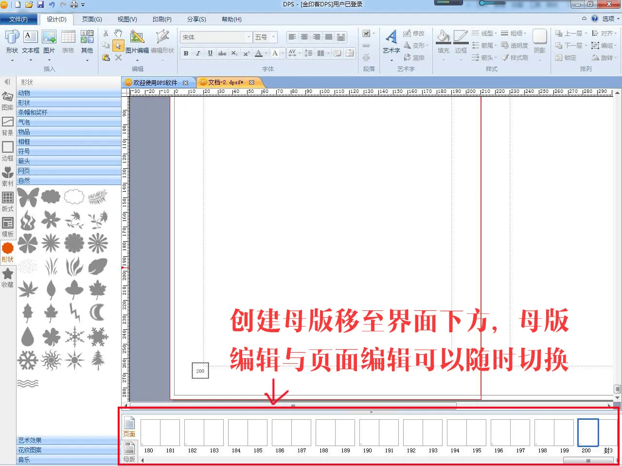 1、创建母版移至界面下方,母版编辑与页面编辑可以随时切换