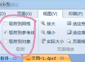 3、工具栏【视图】选项卡添加【吸附】功能勾选,