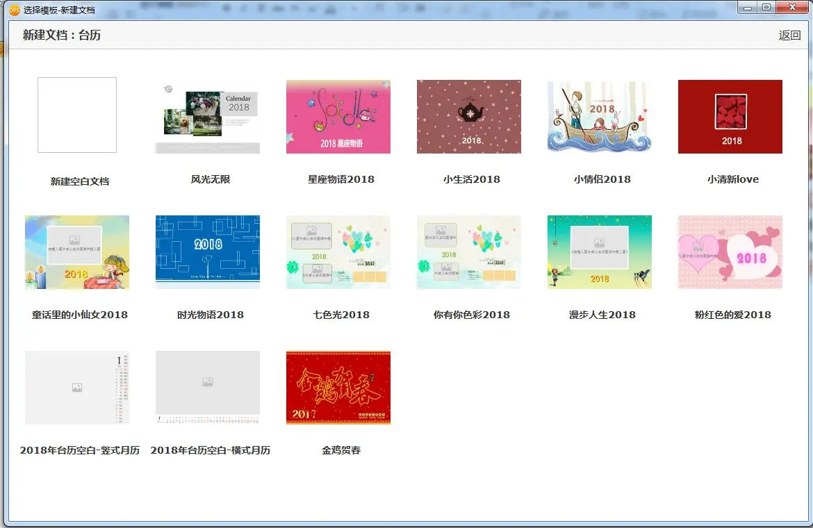 双击打开后,在主界面选择【新建】,在弹出来的产品看板里选择【台历】【月历】或【挂历】,
