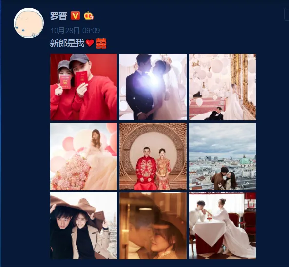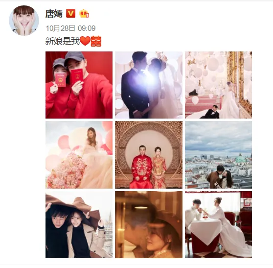 除了公布喜讯外,俩人还晒出了九宫格美图。不管是西式婚纱还是中式礼服,每一张都美得不要不要的。