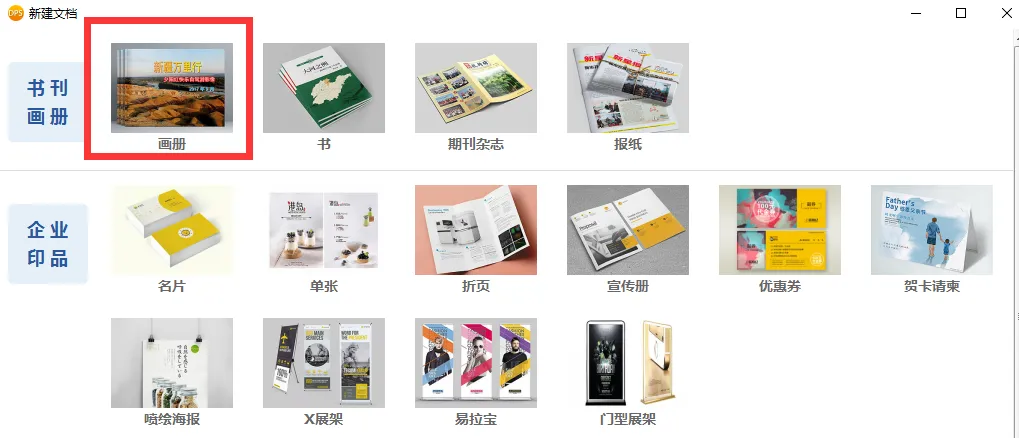 打开DPS设计印刷分享分享软件,找到“画册”的选项,并选择【新建画册】