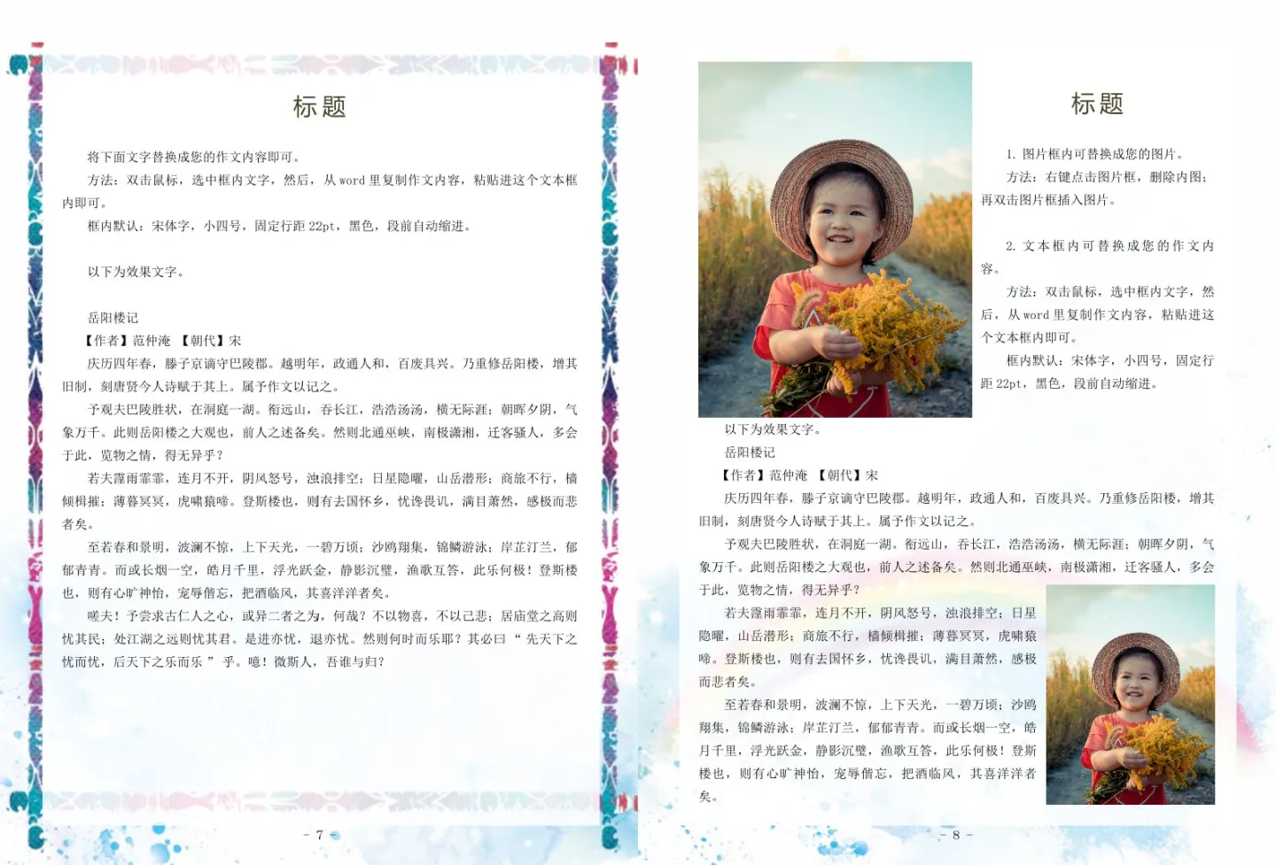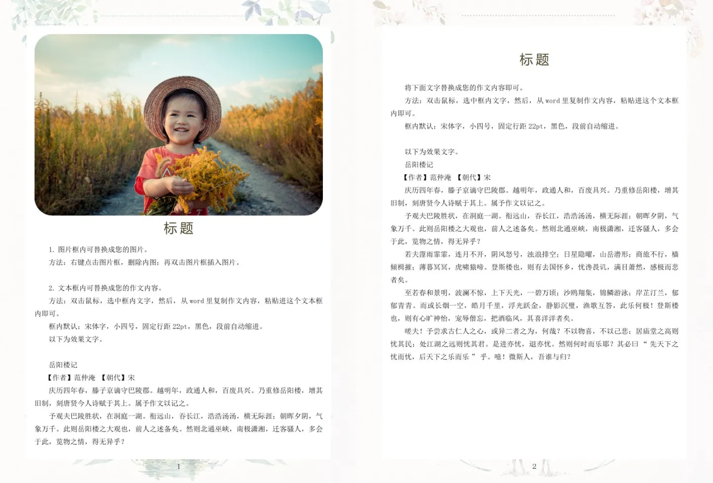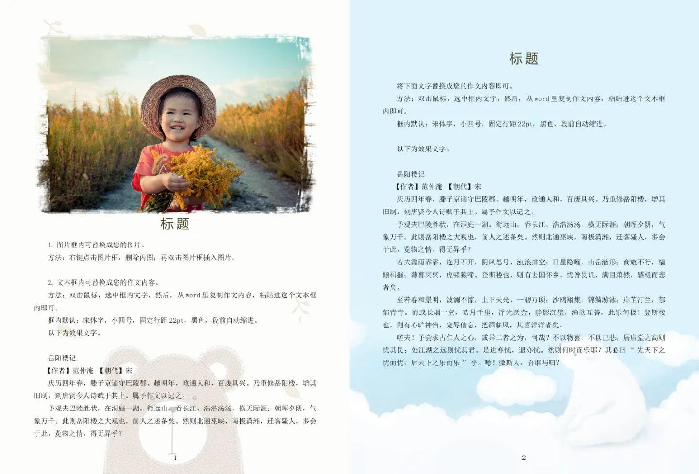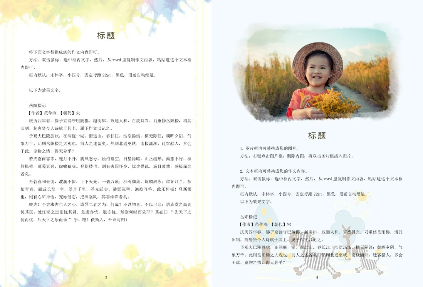 漂亮的作文集模板免费下载,帮你做出精美的作文集