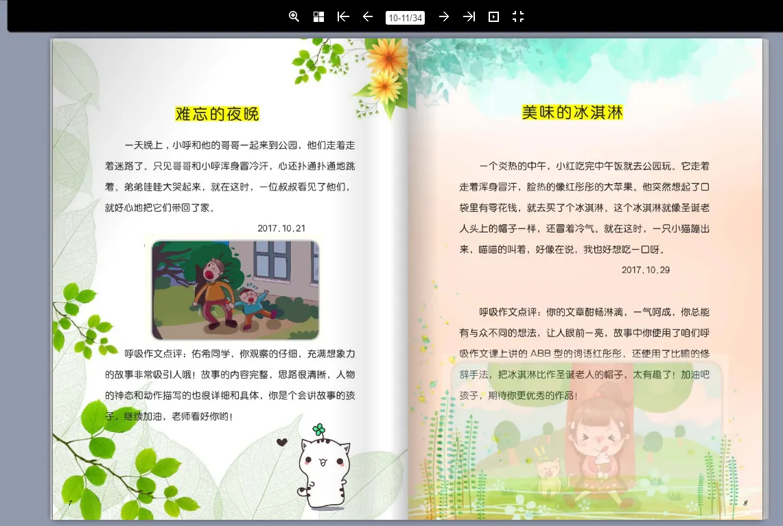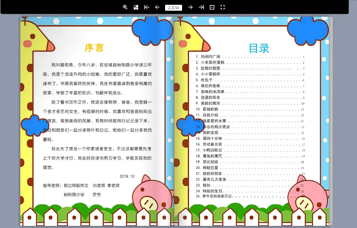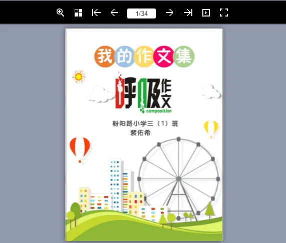 裴佑希小朋友今年才读3年级,年龄小,正处在活泼可爱,天真爱幻想的年龄。所以这种卡通可爱的作文集模板,配上小作者有趣又天真的文字,相得益彰。