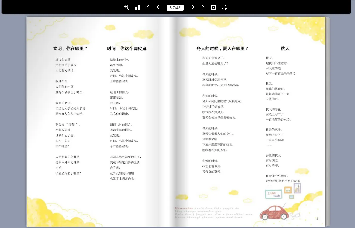 今年10岁的缪芷萱小朋友,已经是一个思想比较成熟的小姑娘了,她爱幻想,也爱思考,写下一串串美丽的诗歌,和一篇篇生动有趣的文章。整本作文集风格清新又浪漫,正符合小作者的文风和性格。