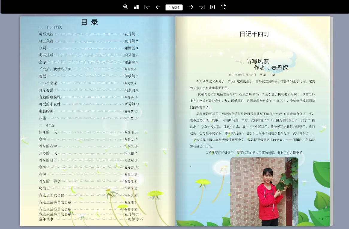 《四叶草》不是一本个人作文集,而是一本班级集体作文集。制作者字作文集中,插入了每一个小作者的照片,并且进行了非常丰富的变化。从这里也可以看出DPS软件简单好用,自由操作的特点。