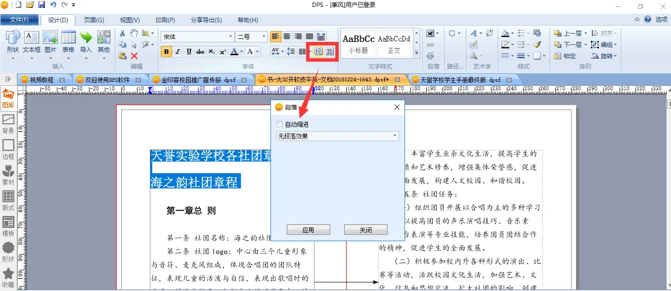 改好字体大小和间距后,我们再对整个内容进行【首行缩进】。方法很简单,单击【段】,在自动缩进前打钩就可以了。