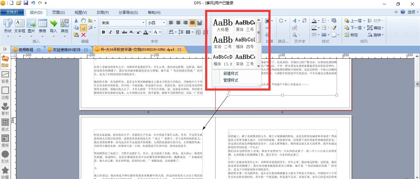 由于编辑过程中,每个章节的大标题、小标题及正文的文字型号基本一致,为节省时间,也为减少差错,这里推荐大家使用“文字样式”功能。
