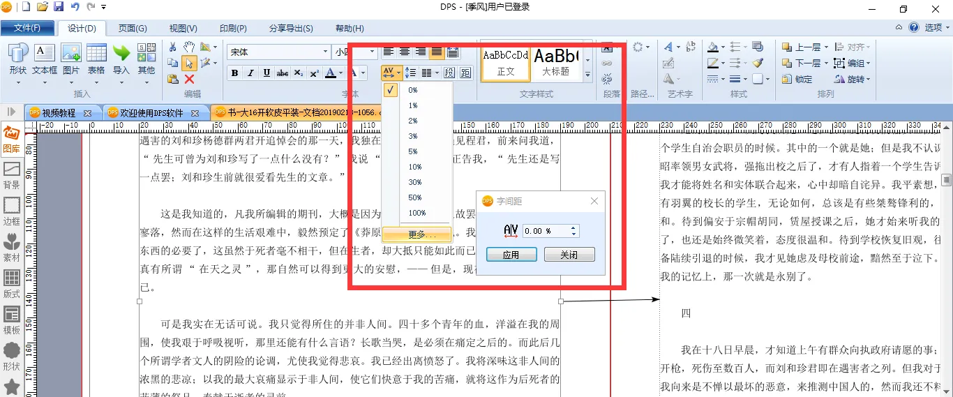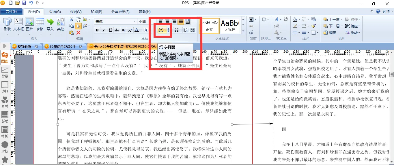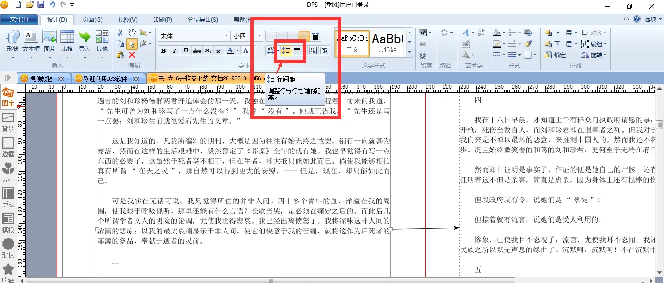 排版过程中,根据不同书籍的要求,我们还需要对文本内容的行间距和字间距进行调节。