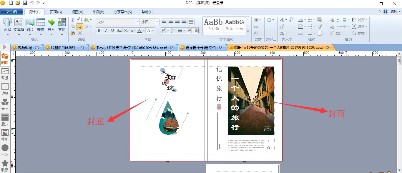 新建好文档之后,要注意区分左边第一页是封底,右边才是封面,千万不要弄混了。