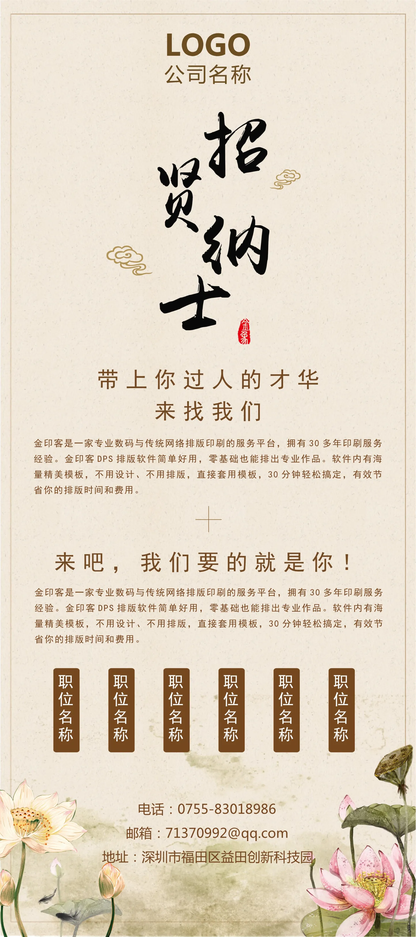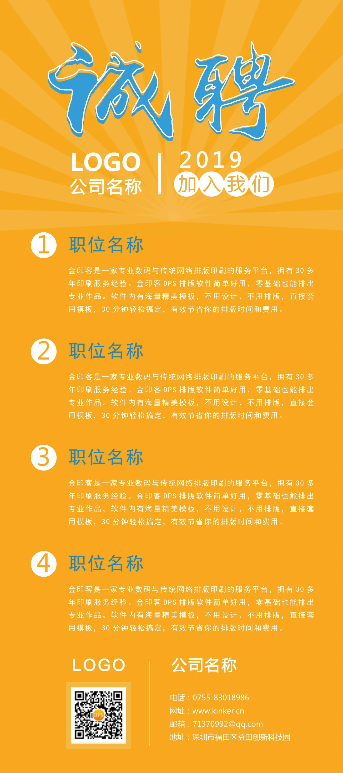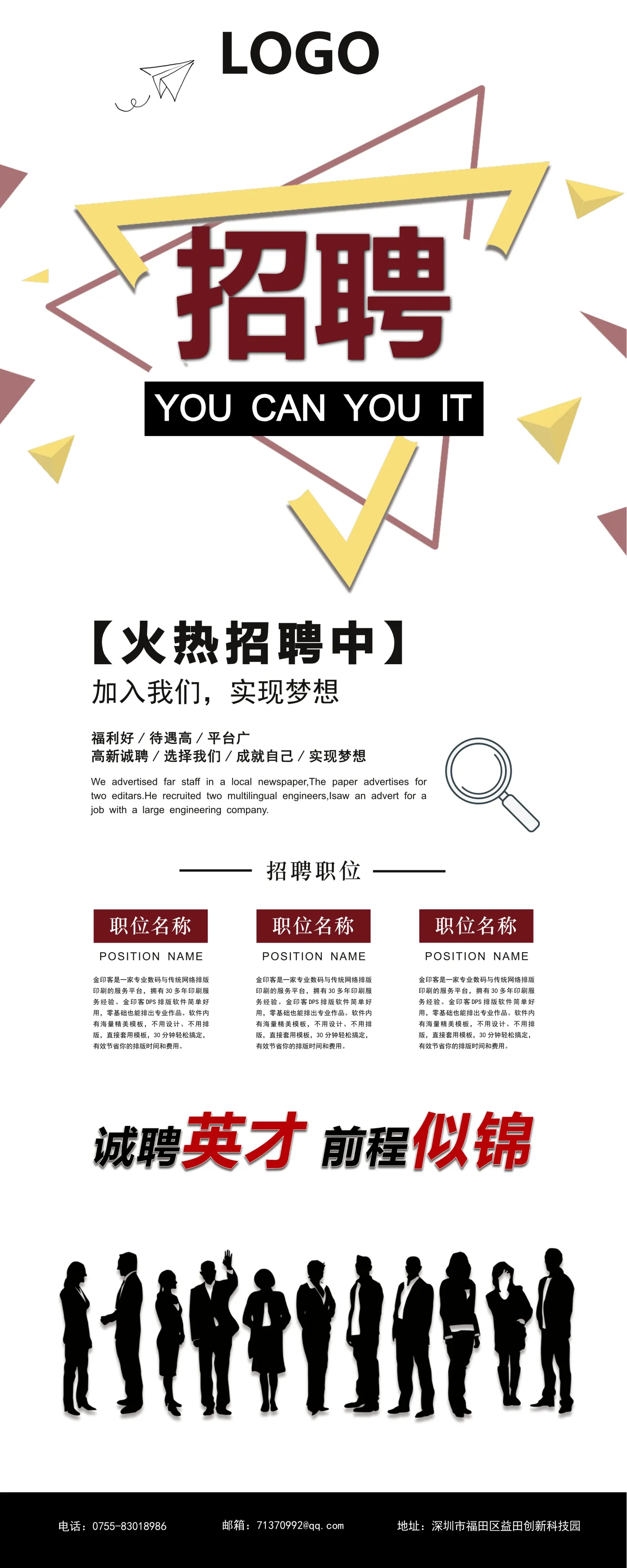 今天金印客要给大家带来的福利就是——一大波现成的招聘广告模板,帮助您招到好员工,生意大展宏图!