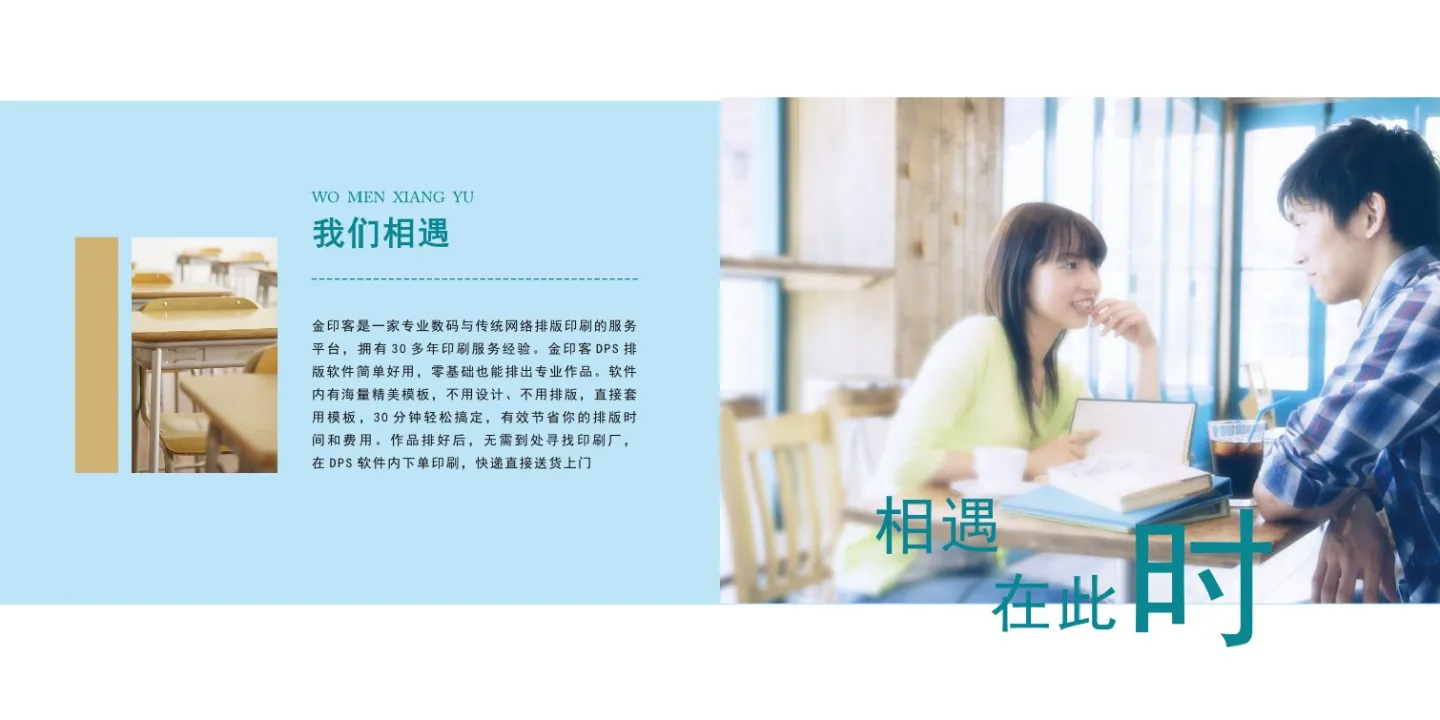 这是金印客专为大学毕业生制作的毕业纪念册模板,名字就叫做《致青春》。和普通毕业册不同,金印客的毕业册模板不只是满足于照片集锦,而是力图做到图文并茂。模板的每一页都既有照片又有文字,为的就是让每个人可以用文字表达情意,吐露心曲。