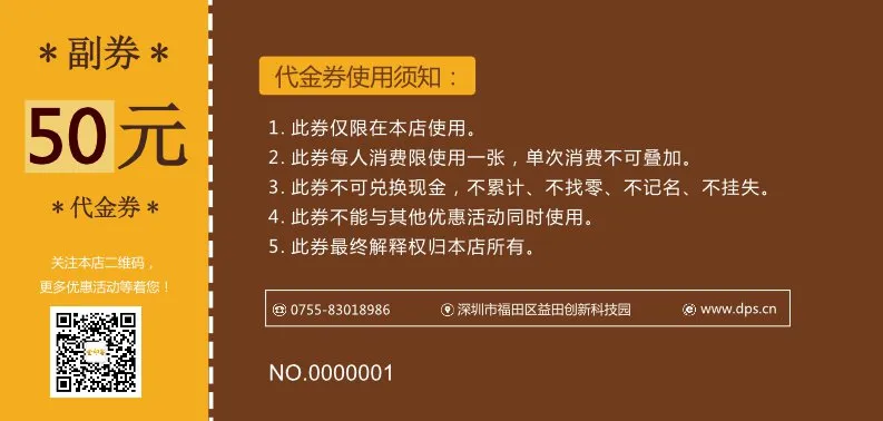餐饮饭店代金券