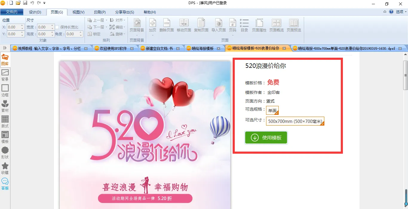 模板在DPS内打开后,即可以对模板内容进行替换了。