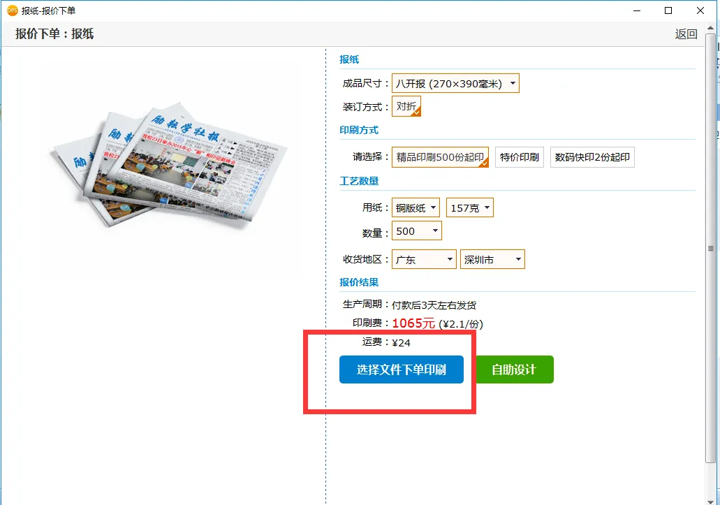 打开【定价下单】,选择已经完成的文件下单印刷,就可以查看报价,并且下单印刷了。