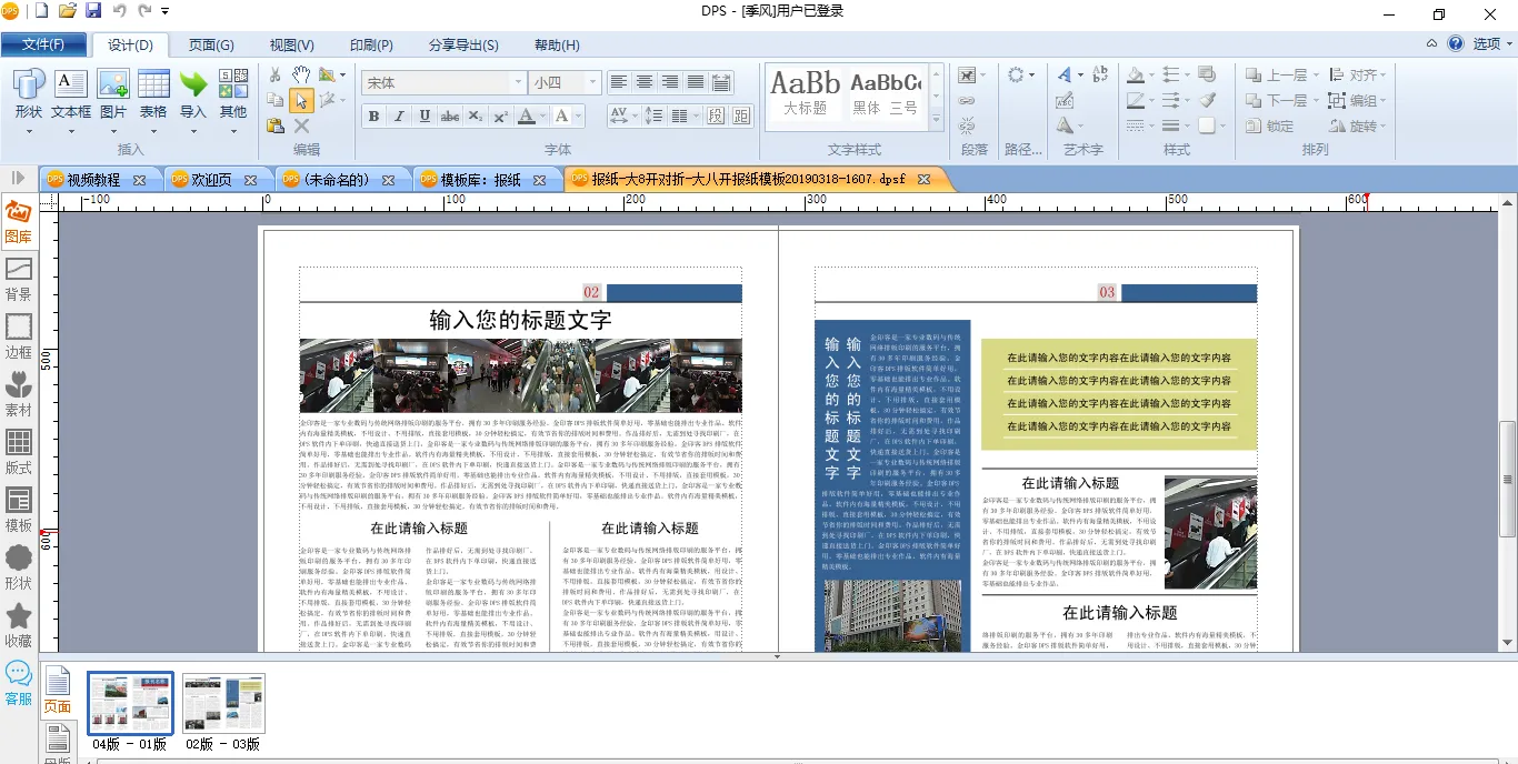 模板已经为您设计好了整份报纸的版式,您不需要自己画文本框,直接在模板内填入文字即可。