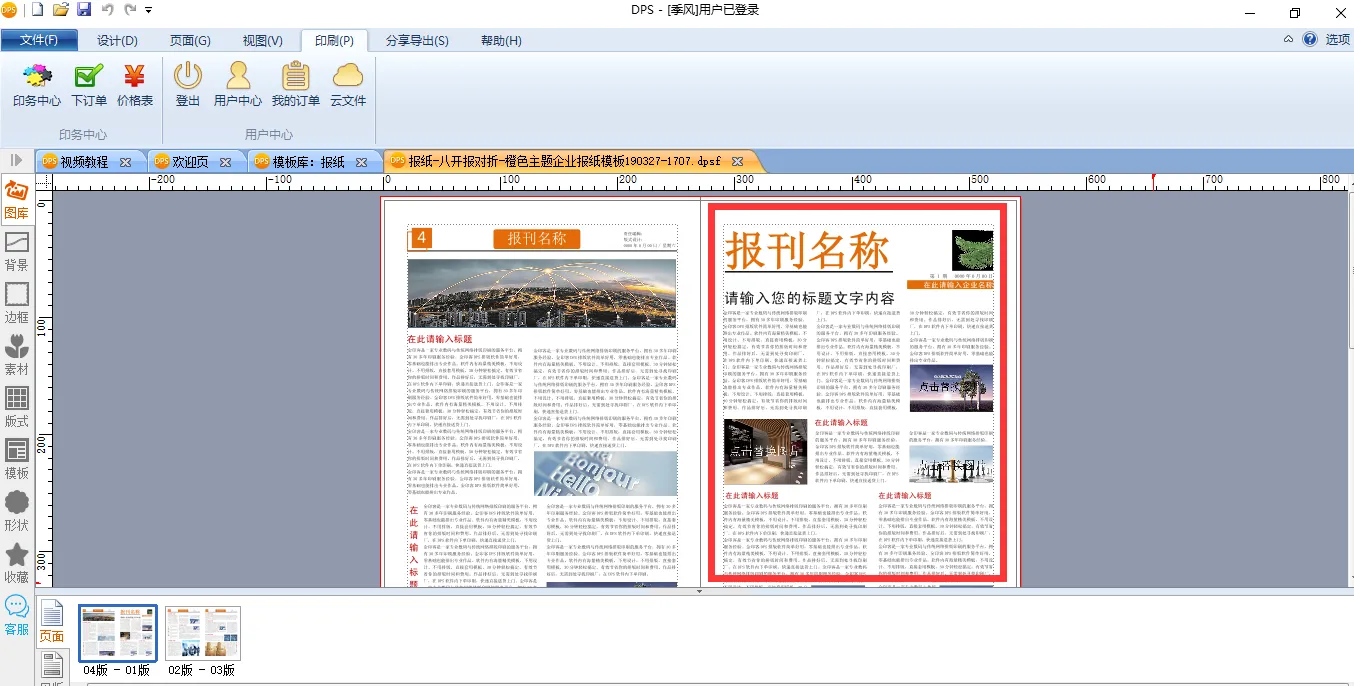 选中模板后,将模板在DPS软件内打开,不用自己设计报纸版式,只需替换模板中的文字和图片,然后稍加修改就好了,非常简单方便。
