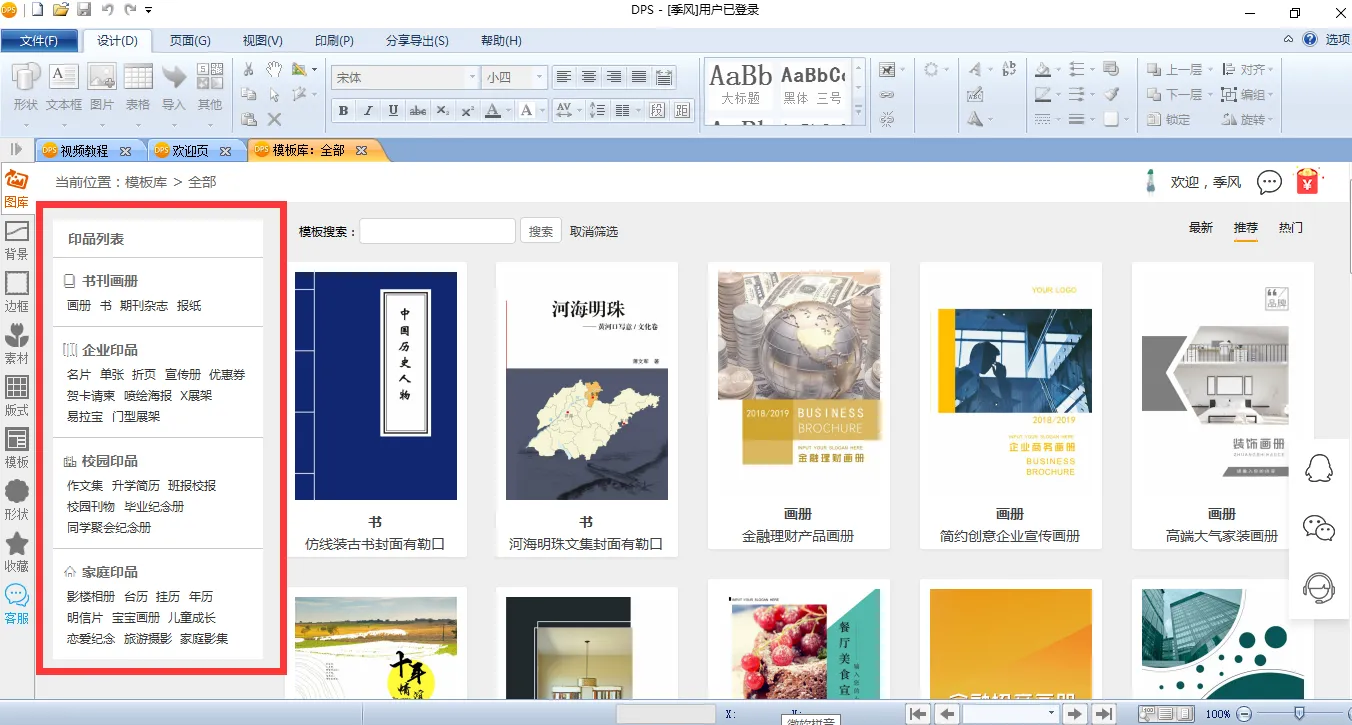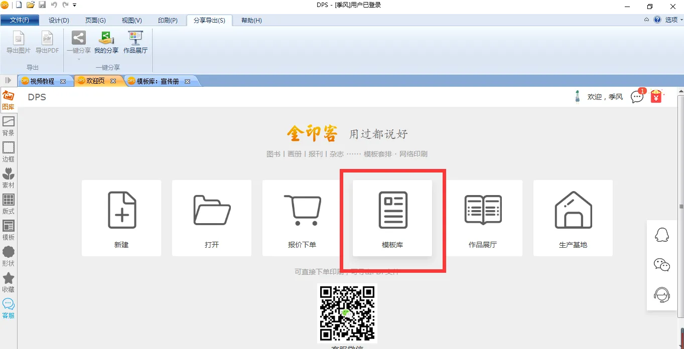 下载软件后,在软件的欢迎界面找到【模板库】。打开模板库后,会发现里面有包括书籍、画册、报纸、宣传册、纪念册、台历等数十种产品的模板。