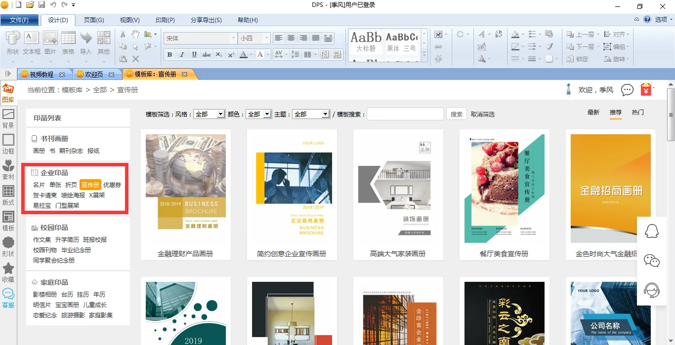 在【企业画册】中找到【宣传册】,就可以发现各式各样的企业宣传册模板,找到金融产品宣传册即可。