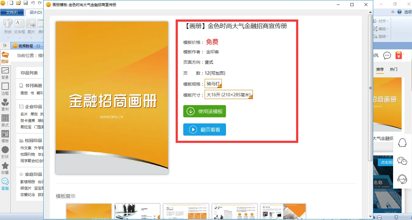 找到模板后,可以选择先【翻页看看】,查看模板的3D电子版,然后再【使用模板】,将模板在DPS软件内打开。