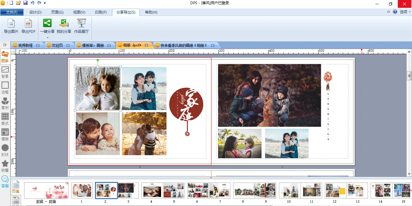 将图片全部替换之后,整本家庭纪念画册就大功告成了,是不是非常的简单呢?