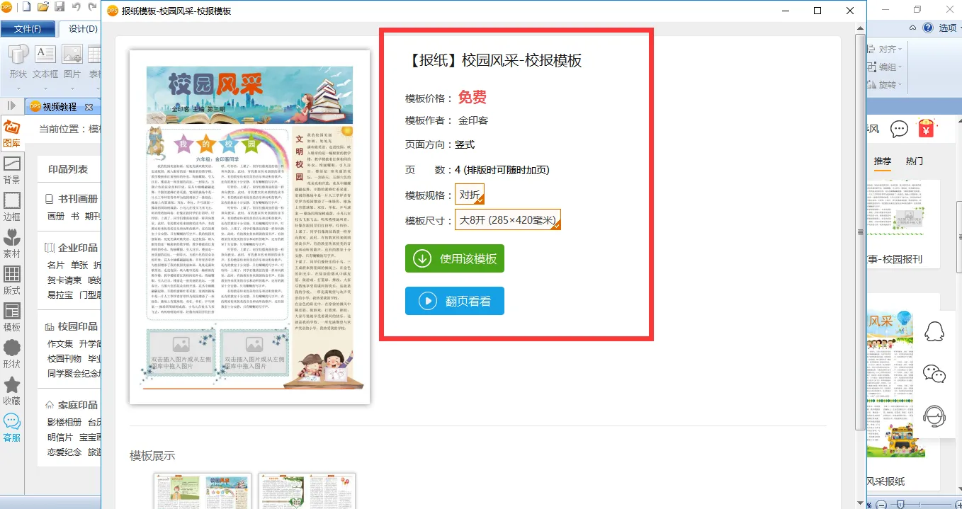 选中模板后,可以先点击【翻页看看】,查看模板的3D电子版,然后再选择【使用模板】。