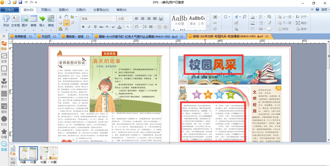 将模板在DPS软件内打开之后,就可以对内容进行编辑了。