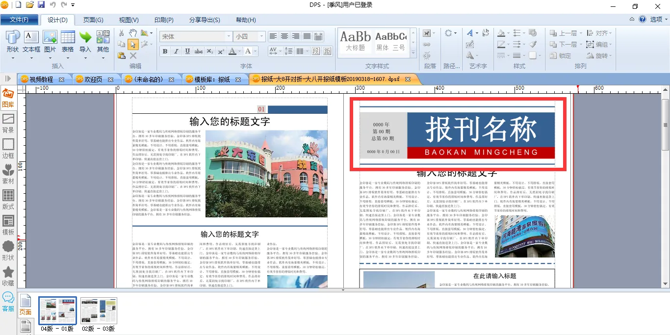 模板已为您设计好整份报纸的版式,包括报头、报眉、导读、头条、栏目、版心、报眼等。您不需要自己画文本框,直接在模板内填充文字即可。模板中的版式也不是固定的,您可以根据自己的需求灵活调整。比如将图片放大或者将三栏文字变成两栏文字等,都可以轻松改变。