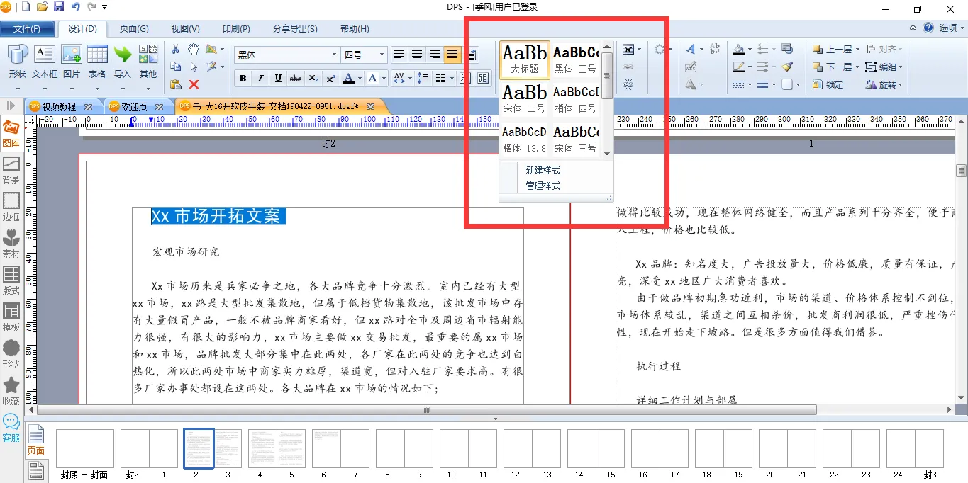 这一步完成后,我们再利用【文本样式】,设置好标题的字体和字号,一篇文章就大体排好了。