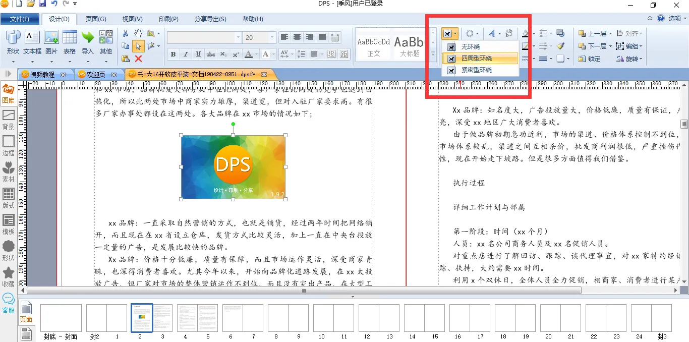 如果还要插入图片,直接在需要的位置导入图片,然后在编辑栏上方选择【环绕】就行了。