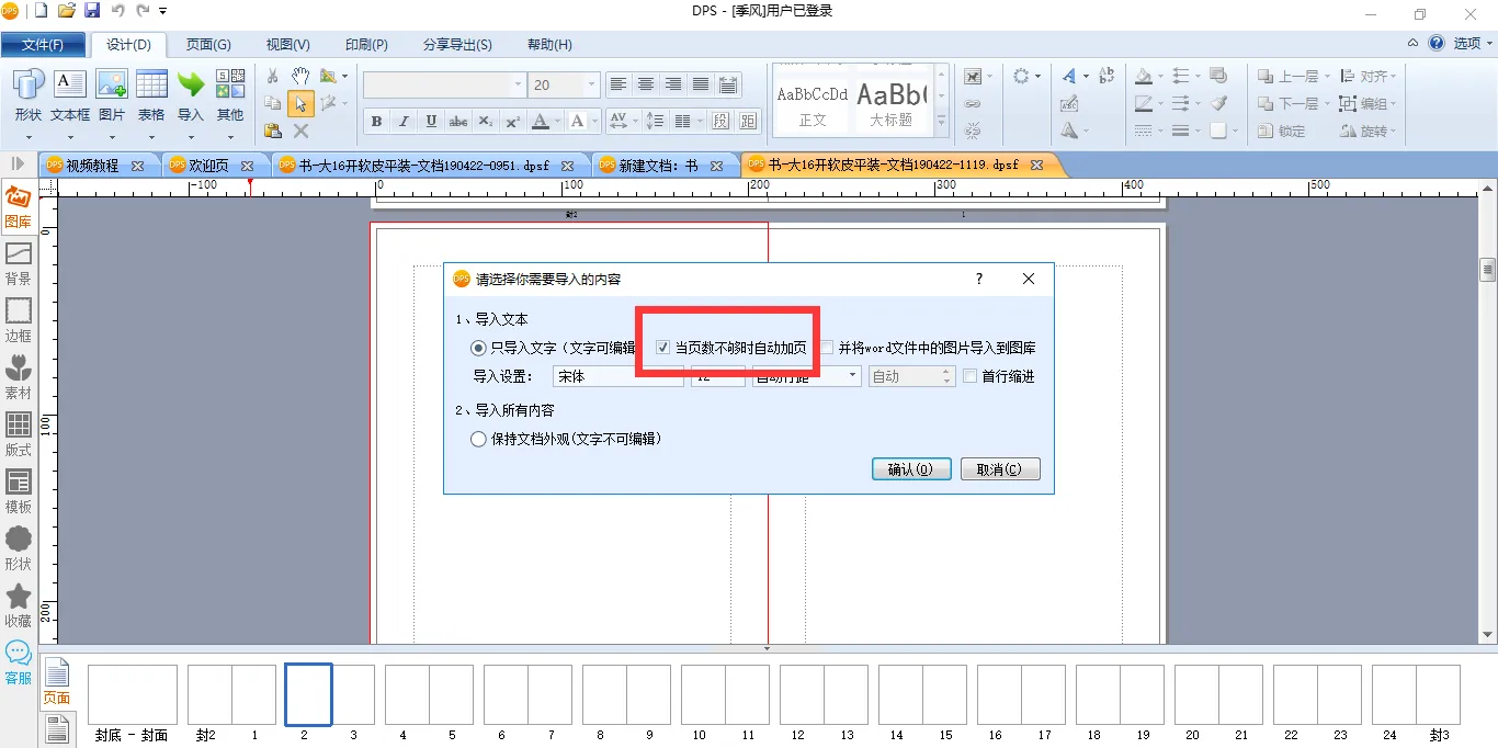 而且这里还要提醒大家一下,导入Word文件时,如果原本的页数不够,还会自动加页,所以也给您节省了加页这一步骤。